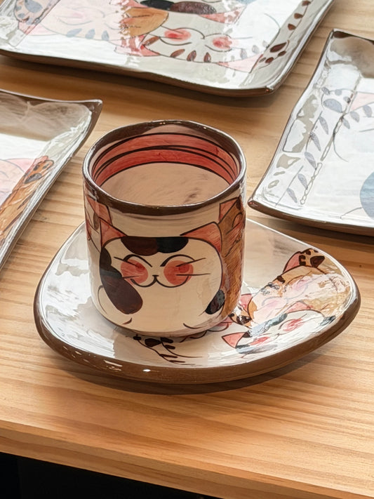 Japan handmade Hasami ware Cat Tea cup