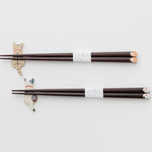 Wakasa lacquerware Cat Chopsticks Gift box with Hidamari cat stand( stripes/Dots Cat)
